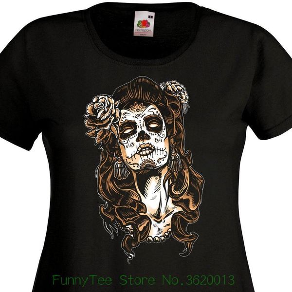 Women S Tee T Shirt Femme Catrina Mexique Tattoo Maquillage Santa Muerte Pin Up Tete De Mort Anime Best T Shirt Site T Shirt Making Companies From