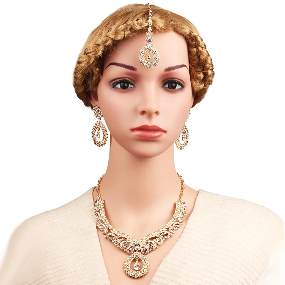 Yulaili Indian Bridal Headpiece Head Jewelry Set Hair Clip Wedding Ethiopian Nigerian African Wedding Bride 24k Gold Plated Necklace