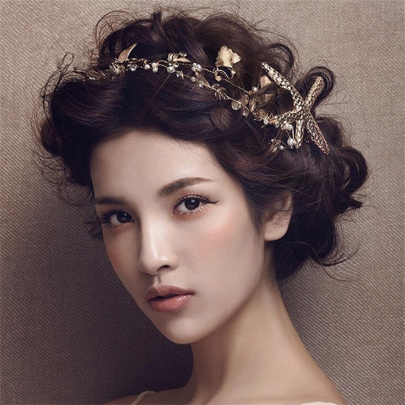 Vintage Wedding Headpiece Starfish Crown Tiara Headband Bridal Crystal Rhinestone Hair Accessories Women Beach Festival Headdress Jewelry