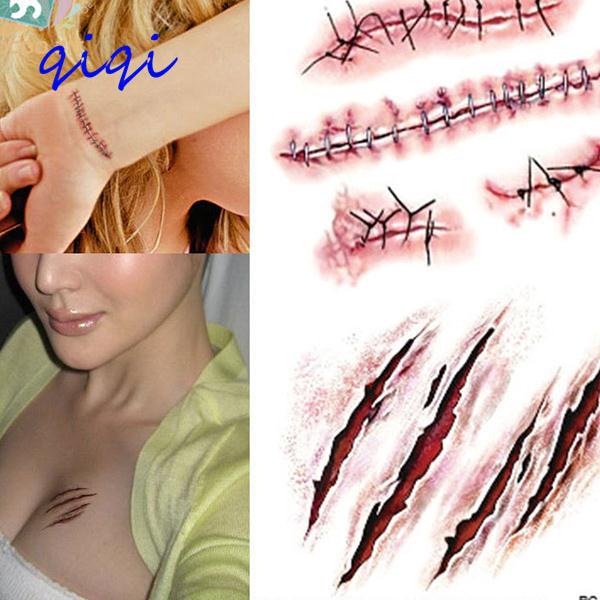 Details About 10x Halloween Blood Body Scab Fancy Scar Tattoos Zombie Cuts Slash Makeup Up