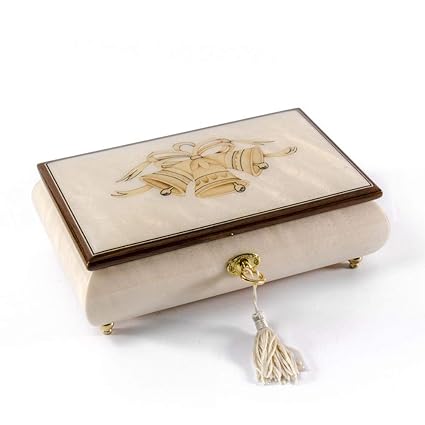 Handcrafted Ivory Wedding Bells Italian Musical Jewelry Box