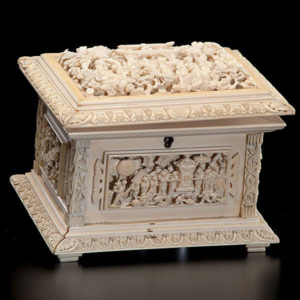 Superb Antique Chinese Cantonese Ivory Jewelry Box 517695
