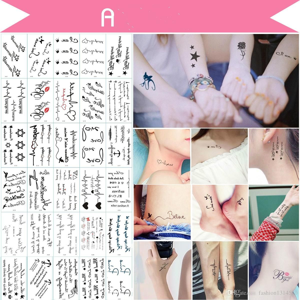 Rocooart Temporary English Word Tattoo Stickers Chinese Black Letters Taty Body Art Fake Tattoo Waterproof For Temporary Tattoos