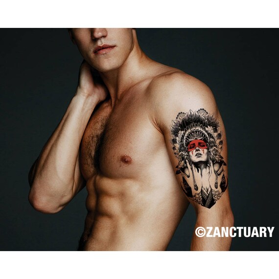 Large Temporary Tattoo Sleeve Half Arm Sleeve Tattoo Portrait Temporary Tattoo Tribal Women Fake Tattoo Sleeve Tatouage Temporaire Zanctuary