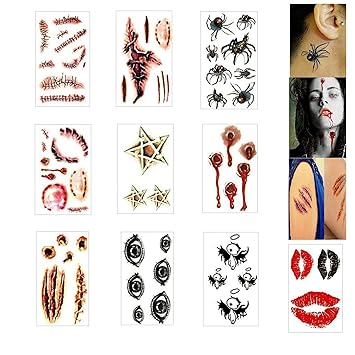 Halloween Temporary Tattoo Skull Body Stickers Fake Tattoos Realistic For Women Men Scar Zombie Fake