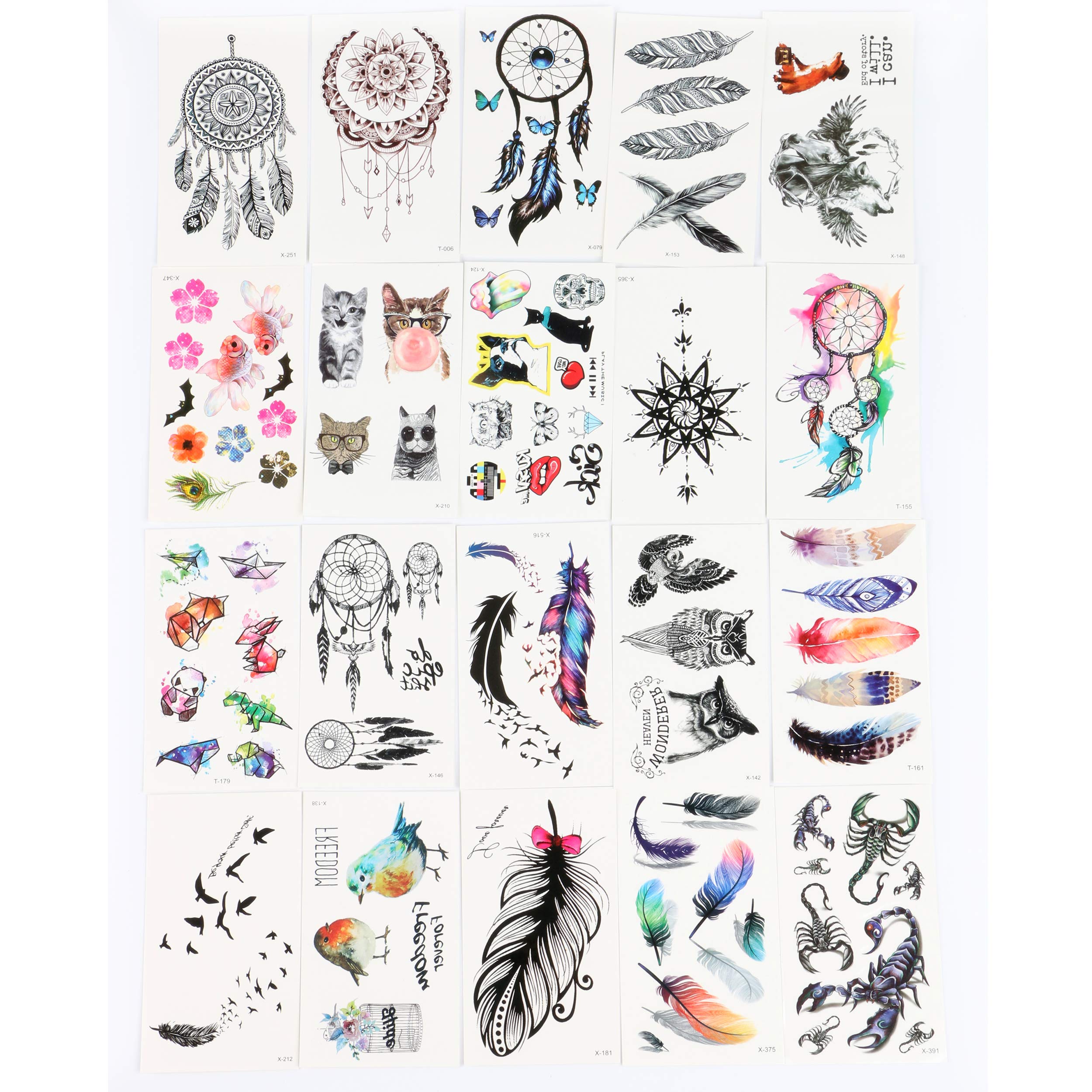 Lady Up 15 Sheets Temp Body Art Temporary Tattoos Fake Tattoo For Women Men Kids Dreamcatcher Boho Cupcake Flower Pattern 80 Designs