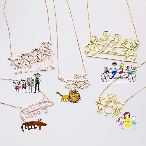 Rir Children Drawing Necklace Gold Rose Gold Diy Family Jewelry Kids Artwork Cute Necklaces For Couple In Stainless Steel
