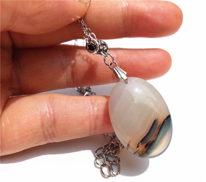 Wholesale Cecmic Chinese Jade Moss Agate Quartz Crystal Stone Jewelry Necklace With Field Picture Inside Pendant Jewellery Aquamarine Pendant Necklace