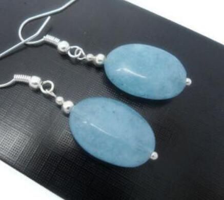 Free Shipping Natural Blue Chalcedony Oval Stone Jewelry Drop Earrings