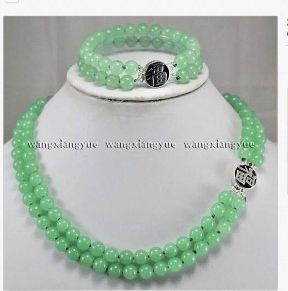 2018 2rows Natural 8mm Green Jade Gemstones Jewelry Necklace Bracelet Set Aaa Grade From Dong1233 Price Dhgate Com